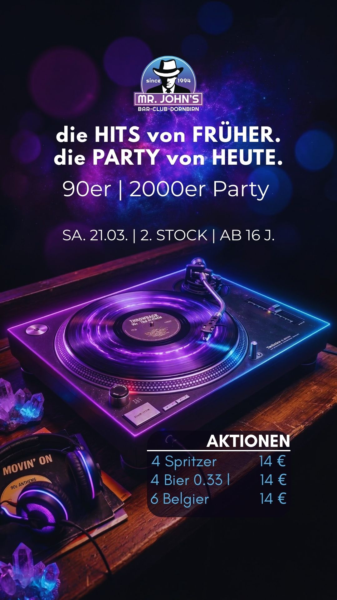 Im Jahr 1994 öffnete die Bar Mr. John’s am Marktplatz im Zentrum von Dornbirn ihre Türen. Durch mehrere Umbauten entwickelte sich Mr. John’s mit seinen zwei Ebenen – der Bar im ersten Stock und dem Club im zweiten Stock – zu einem der Hotspots für Jung und Alt in Dornbirn.